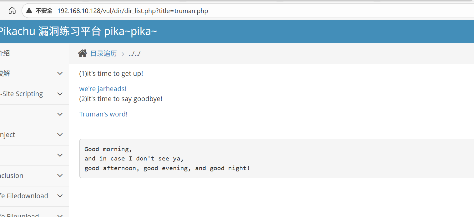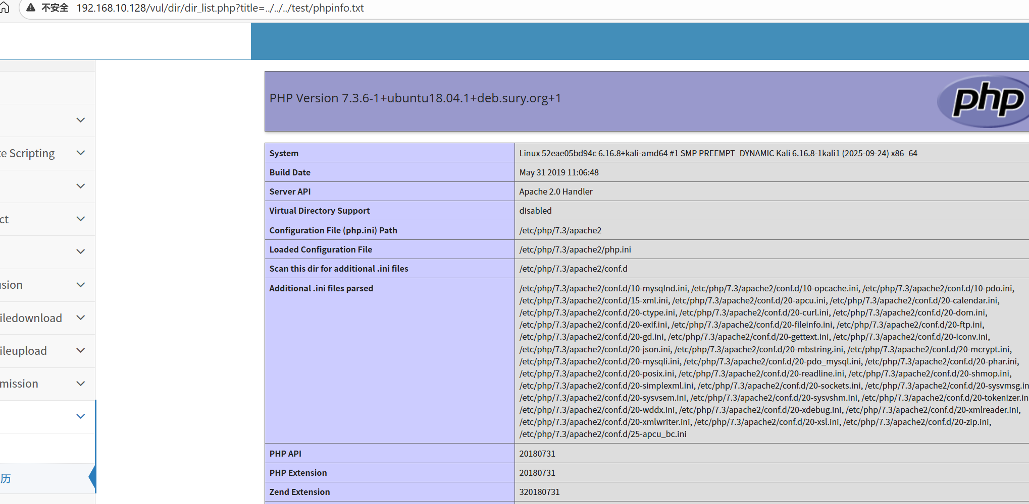 http://192.168.10.128/vul/dir/dir_list.php?title=../../../test/phpinfo.txt