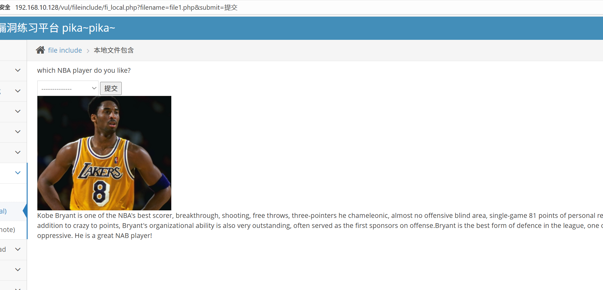 http://192.168.10.128/vul/fileinclude/fi_local.php?filename=../../unsafeupload/uploads/2026/01/16/740673696a23912bd59633442070.png&submit=%E6%8F%90%E4%BA%A4