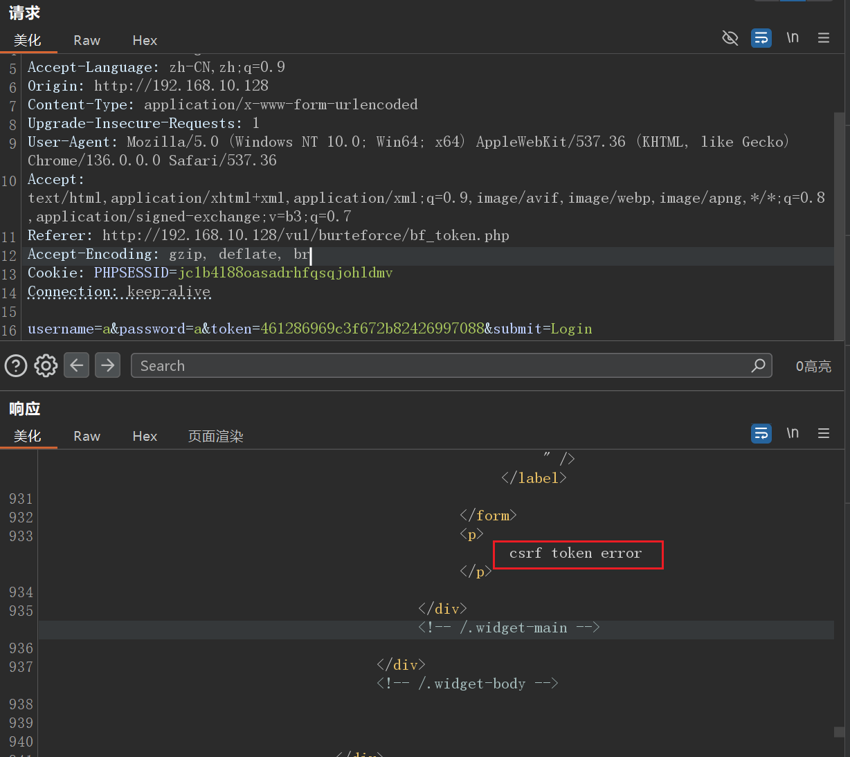 我们回到这一关,先抓包,发现多了一个 token 字段,我们发送到 Repeater 模块,发现再次发送请求,出现了 error。