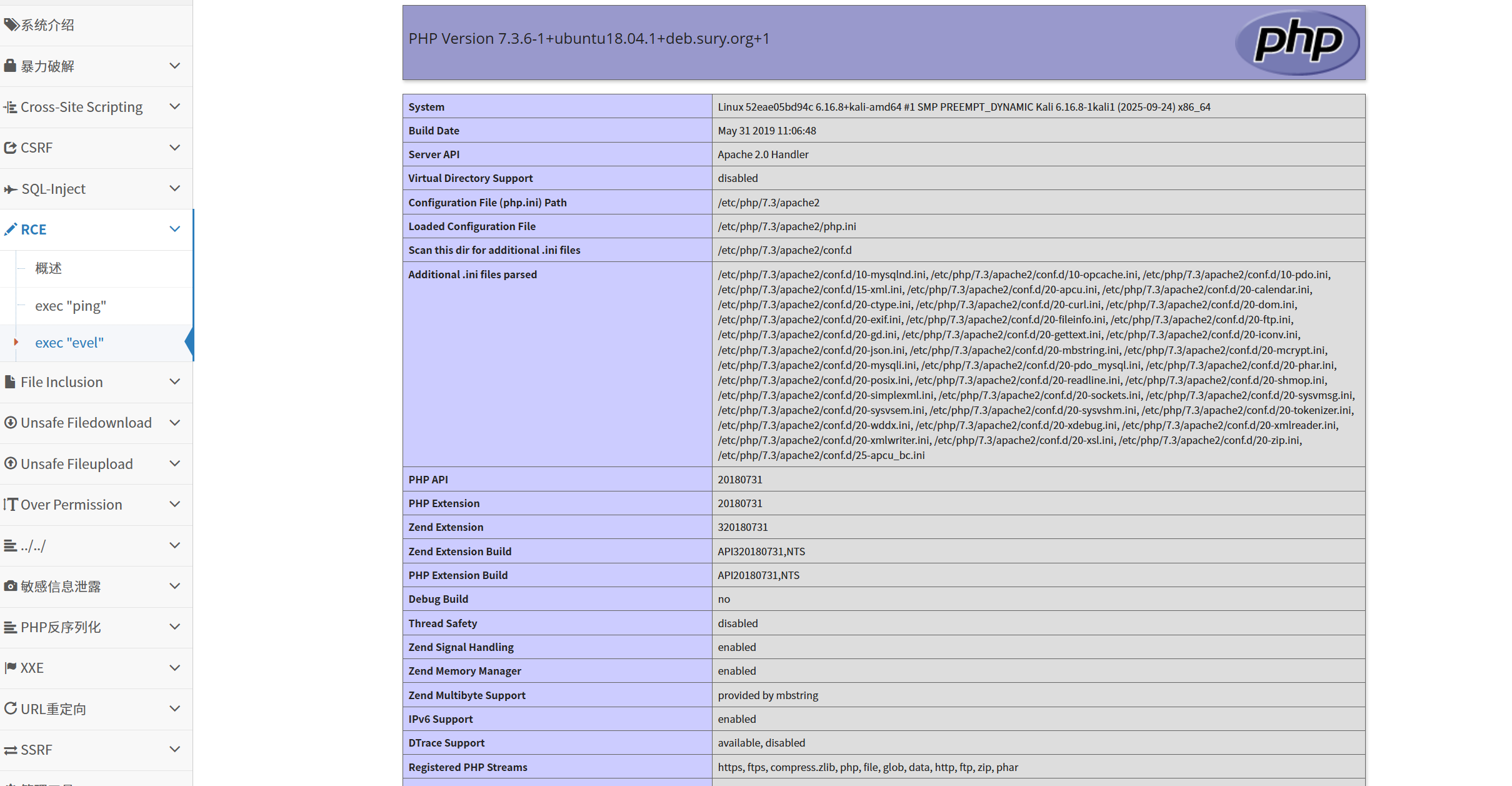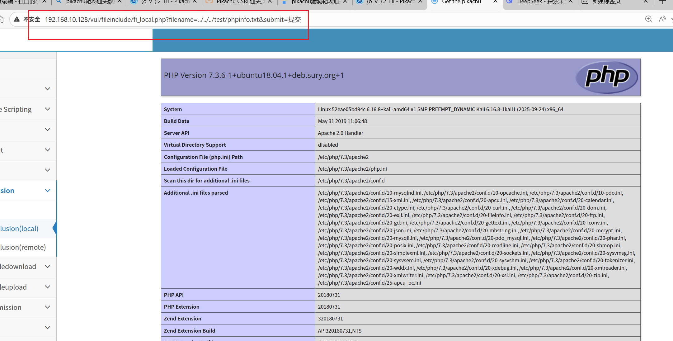 http://192.168.10.128/vul/fileinclude/fi_local.php?filename=../../../test/phpinfo.txt&submit=提交