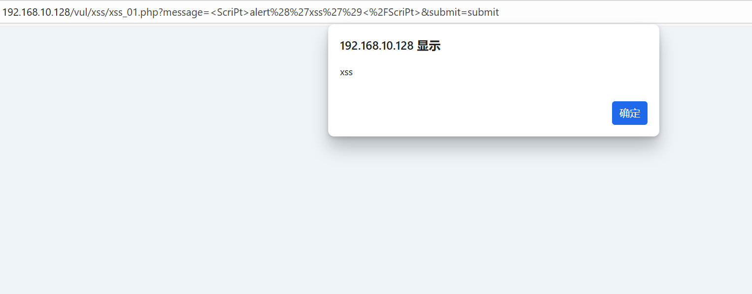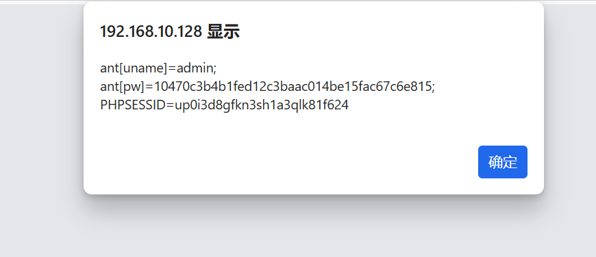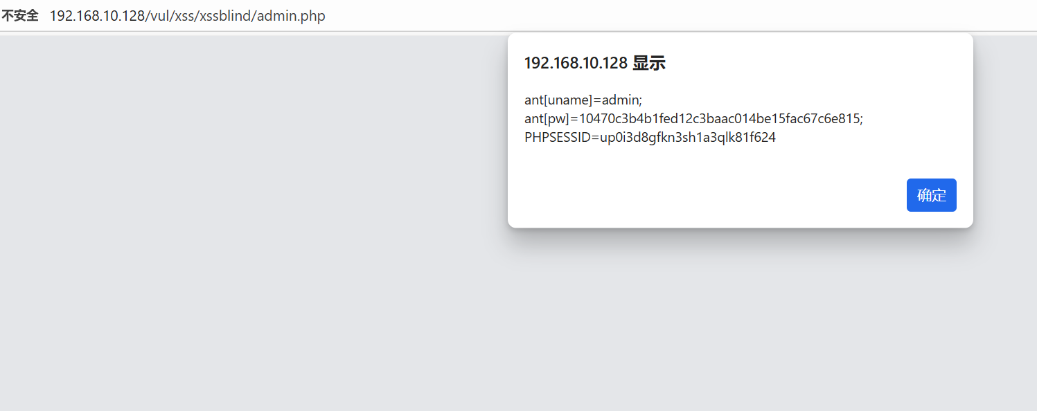 然后登录后台http://192.168.10.128/vul/xss/xssblind/admin_login.php,输入账号密码 admin/123456,然后就会触发 XSS。