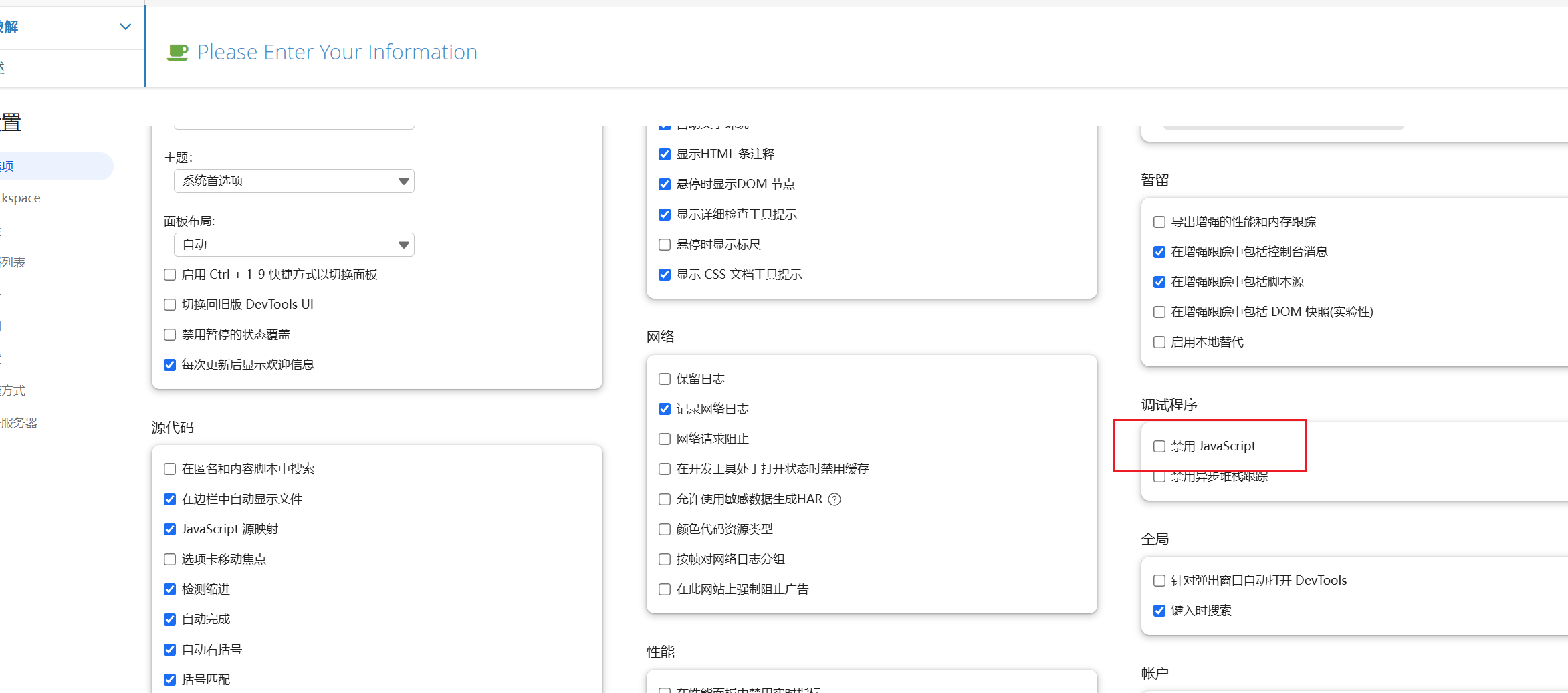 emmmm,任何在前端进行的验证,都是没有任何作用的。我们打开开发者工具,然后找到设置,直接禁用 JavaScript,这样验证机制就被绕过了。