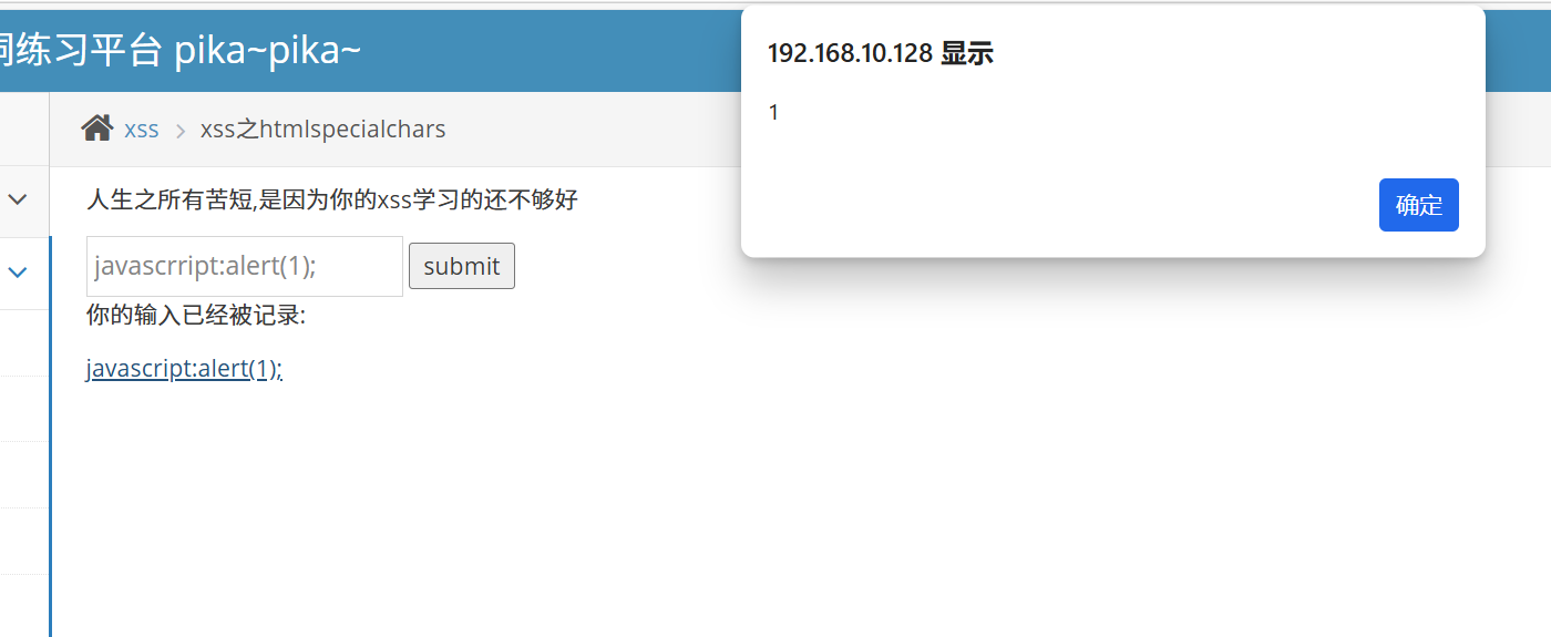 和上面的一样,直接输入:javascript:alert(1);就可以触发。